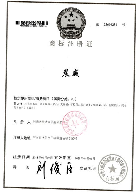 Стандарт:trademark Номер:23616254 Дата выдачи:2018-04-07 Дата истечения срока действия:2028-04-06 Выпущен К:State Administration for Industry and Commerce of China |